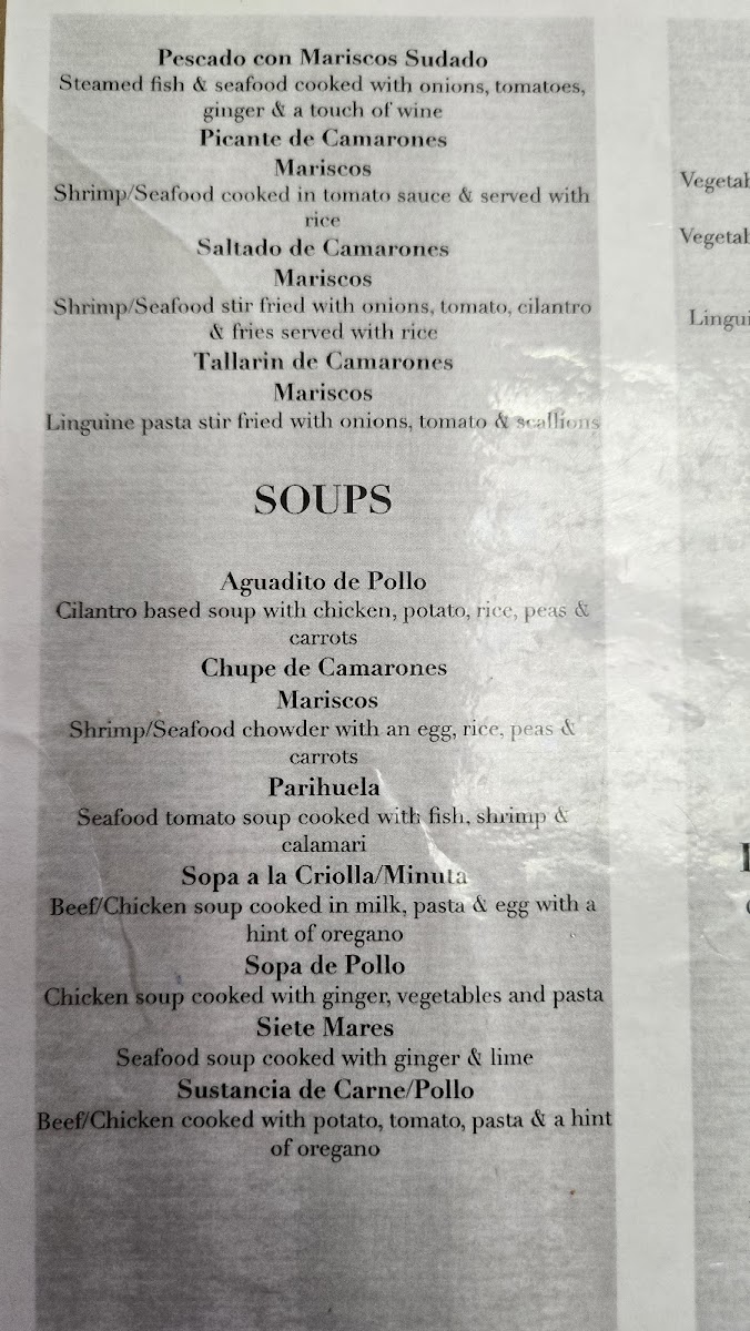 Additionally, the menu includes starters like ceviche and various fried sides including yucca with Huancaina sauce and fried plantains. Soups such as Aguadito Chicken Soup offer lighter meal choices. Typical accompaniments such as Peruvian-style bread with butter are sometimes served as well.